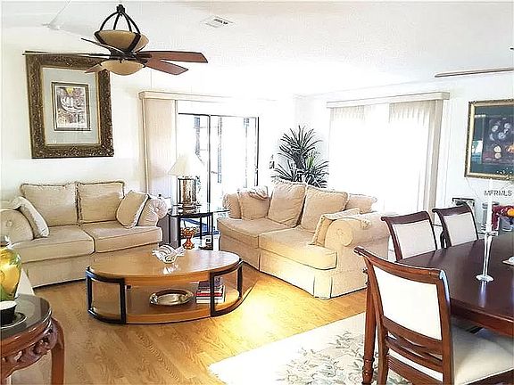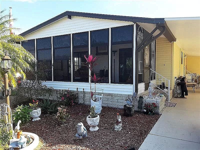 Beautiful, spacious home in Vizcaya Lakes. This two bedroom, two bathroom home features, sky lights, laminate and ceramic tile flooring, open floor plan with vaulted ceilings. This is an active 55+ community with exercise classes, community center, dinners and other gatherings, shuffleboard, two golf leagues, pickle ball, monthly dances with live music and other activities. This home has a nice size kitchen and dining area. The master bedroom is large and has 2 full closets, along with an additional linen closet in the bathroom area. The master bath was updated and remodeled in 2018. Plenty of room for your wardrobe. Large pantry in the kitchen and inside utility room complete with new washer and dryer. Relax on the lanai/Florida room while enjoying the fresh air from Vizcaya lake blowing through on the cool Florida nights. A nice size workshop attached to the home is a nice addition and adds plenty of storage options, including hot and cold water. Air conditioning was replaced in 2017 and is still under warranty. Roof is 9 years old, windows and flooring 6 years old and this home also has it's own concrete patio for those sunny days. Some other upgrades include, 2 sliding glass doors that lead to the Florida room. Extended drainage to move the rain away from the home, slate flooring and 4 electric access points on the exterior of the home. Vizcaya Lakes is close to shopping, beaches and dining. All furnishings stay with the home, except for some personal items. NOTE: This property is land owned by owner and no lease fees. Brokered by: Thomas Sons with Keller Williams Island Life