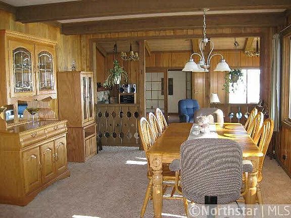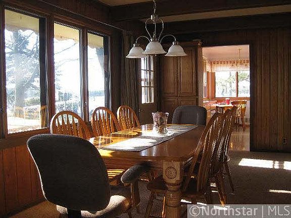 Panoramic views of gorgeous North Sand Lake at the end of Peninsula Rd. One of a kind property with 324' of sandy beach. This solid 2 BR, 2 BA home with a beautiful massive fireplace offers one level lake living with attached 2 car garage and bunk rm.