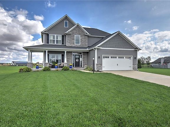 Custom built - Nearly new 4 BR gem in the Mt. Zion School District situated on a Sidewalk lined court in the growing Summerfield Estates Addition! 9' ceilings and Wood floors throughout main level. Dramatic 2 story entry off the beautiful wrap around front porch. From the back patio you can enjoy sunsets and open views! Kitchen boasts a farm house sink, granite countertops and subway tile backsplash....open to breakfast room and onto the family room with gas fireplace. Custom trim and crown molding in the dining room. Laundry conveniently located on the 2nd level. Master Suite has a tiled walk in shower plus a separate jetted tub, plus a double sink vanity and walk in closet. 1/2 bath and mud/locker area off the garage. The basement with wet bar is the perfect place to entertain friends or relax with family.