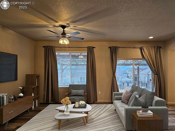 Situated on an elevated corner lot within the Four Mile Ranch golf community is this stunning ranch home built in 2022. This open floor plan boasts 3 bedrooms, 2 bathrooms, and breathtaking views of the mountains and golf course! This well-cared-for home has many aspects upgraded from the builder's original standard features including updated luxury vinyl plank (LVP) flooring, plush carpet throughout, quartz countertops in the kitchen, upgraded LG stainless steel appliances, and custom window blinds. Enjoy the large windows throughout the home that showcase the views of the mountains and golf course while still having comfort and convenience with tinted windows to reduce heat. This home's energy efficiency, sophistication and modern conveniences don't stop at the interior. The spacious backyard is perfect for entertaining, featuring a 46x14 cement patio, a matching wood pergola, and a cement walkway leading to the front. Complete landscaping includes retaining walls, sprinklers, and a black iron fence that encloses the lush lawn. This home wouldn't be complete without a finished 2 car garage and built-in radon mitigation system. This quiet yet vibrant golf community has NO HOA, is about 40 minutes to Fort Carson/Colo Springs and 30 minutes to Pueblo West.
