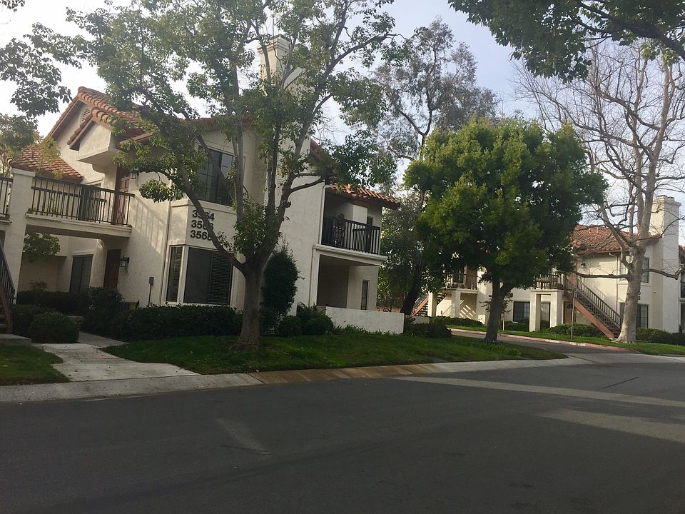 Excellent upper floor, corner unit for rent!! Dual Master Suites with Full Bathrooms for each!! Newer Carpet! Granite countertops in the kitchen! Travertine Fireplace with custom mantle! Unit also has A/C and interior Washer/Dryer as well! 2-Car Garage with Newer Garage Door! Located close to shopping, stores and I-5! CALL OR TEXT Linda Drylie 858-752-2904 for showings. 12-month Lease
