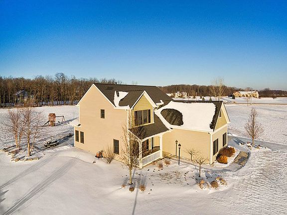 You will be impressed by this impeccably kept country home! A unique find in that you have privacy and yet are a part of a rural community. This 4 bedroom, 2.5 bath home is move in ready! The large kitchen features an eat in area, a large breakfast bar, all appliances, and a beautiful backsplash to complete the look! You won't miss a thing with the open concept floor plan. The living area on the main floor is completely open with a cozy fireplace and windows looking out into the private backyard. The formal dining room is now being used as a toy room but could also be an office or den. The versatility in this house is amazing! The upper level showcases all the bedrooms and two full baths. The master has a dual vanity, walk-in shower, and a huge walk-in closet! Off of the master is an unfinished 26 x 10 bonus room which could also be used as an office or exercise room. In the basement you will find a spacious family room and a den/office. There is a Kinetico water softener that is included in the sale. This lovely home comes to you on a little over 2 acres. With well and septic your monthly utility bills are low! Schedule your showing today!