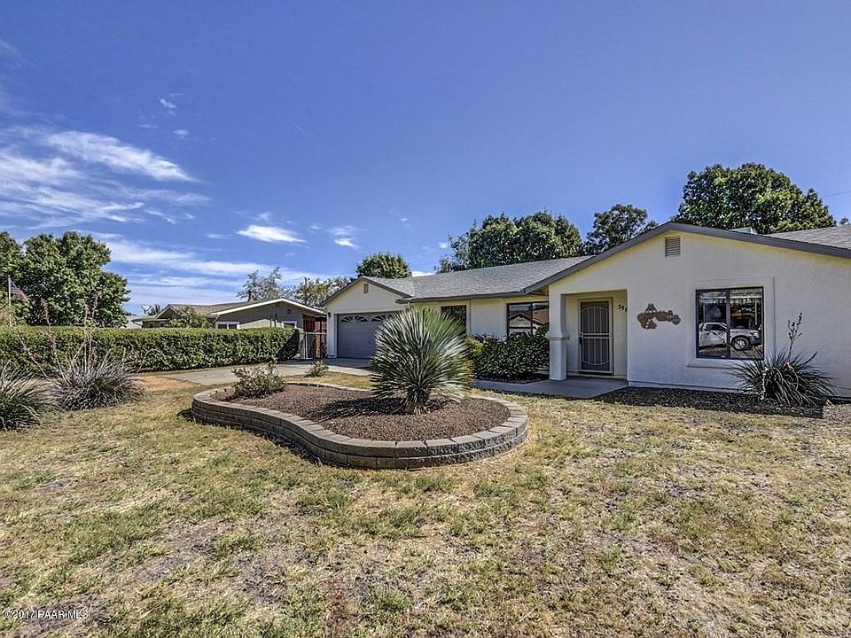 This lovely, well-maintained Prescott Valley home is close to schools, hospital, parks, and restaurants and move-in ready, especially with all appliances included. There are three bedrooms with roomy closets (split bedrooms), two baths and a two-car garage. Enjoy the ultimate family-living environment: Open floor plan, raised ceilings and updated kitchen with a convenient breakfast bar. Adjacent to the kitchen is the laundry area leading to a large family room and one of two indoor access doors to the fenced backyard and the extended concrete patio. A shed in the backyard offers more storage.