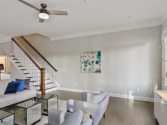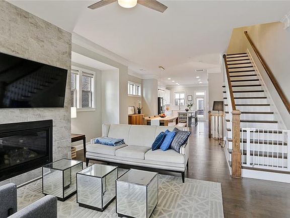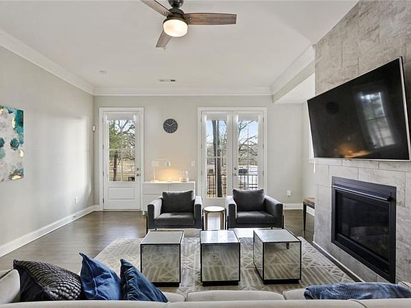 WOW - Like new Brookhaven townhome situated across from Blackburn park, walkable to festivals, restaurants, shops. Enjoy to perks of this end unit with great natural light, hardwood floors throughout. Entertaining is easy with open floor plan with white kitchen, stainless steel appliances, tile backsplash, quartz counter tops, island with breakfast bar. French doors leading to deck, eat in area plus a full dining room, all open to fireside family room. Master bedroom with trayed ceiling, master bath with double vanities, spacious walk in shower, secondary bedroom with private bath, basement level is perfect for a bonus room or bedroom and full bath with courtyard patio, 2 car garage, gated community!!