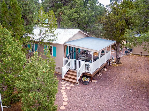 Unique find, cabin style-studio on a great lot. This little cutie is being sold furnished and in as-is condition. Covered front deck with plenty of room to sit and enjoy the cool mornings and beautiful evenings. Property also offers 2 nice sheds; one has been finished and is currently being used as a ''bedroom''(appx 6'X8'). The other with plenty of storage room for your tools(appx 10'X12'). Property is almost fully fenced for your little ones, with easy access gates. Electric water heater under kitchen sink. Studio is appx 372 square feet, per the owner, it is a non-permitted structure. We are in the process of having the property assessed for square footage by Navajo County. Buyer to verify square footage.