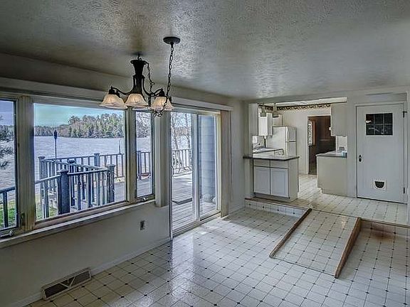 DEERSKIN LAKE HOME - Opportunity is knocking for some lucky buyer with this prime piece of real estate AND solid 2 BR, 2 BA year-around home on PRSITINE 300+ acre Deerskin Lake. Located just far enough out of town to feel incredibly private this location is ideal for someone who wants the best of BOTH worlds. The lot offer 2.5 acres and 450 feet of frontage. The next owner can dream big by keeping it private or talk to zoning about subdividing. The options are huge here. The home itself is literally feet from the water's edge & it has a level approach to what I am told is a gorgeous sandy beach! It faces south for afternoon sun & is currently handicap accessible. The original cabin was added on too; so you have a mix of the old & the new & with a little work this could be the perfect getaway or permanent home for some lucky buyer. There is a full basement under the original cabin, a stone fireplace, & a HUGE attached garage. This is priced below FMV for a sale by summer!