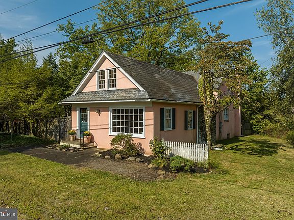 Basking in eclectic charm, this historic Solebury Township home offers 2,424 sq ft with 3 Bedrooms, 2.5 Bathrooms, a detached studio, and a barn style shed all on 2.68 peaceful acres. Built in 1930, features include solid stone walls, hardwood flooring, exposed beam ceilings, a porcelain cast-iron tub, a brick wall with a freestanding wood burning stove, a built-in fireplace with Delft blue tile accents, a Dutch door, a cedar closet, and a flagstone walkway. The façade with a slate overhang and large picture window faces Windy Bush Road. The natural entrance is from the driveway, through the privacy fence and into the side courtyard, up the flagstone landing and thru the Dutch door. Enter the Living Room with hardwood floors, a wood burning fireplace, and three panel French doors that exit onto a deck with a retractable awning. Aside the Living Room is the spacious Kitchen with tile flooring, a wood stove, ceramic tile countertops with detailed accents, and cabinets painted a warm butter yellow. The main Basement entrance with utilities and Laundry is through the Kitchen next to the back door that leads to the outside deck. Back through the Kitchen into the front of the home is a large room with a divider wall and painted exposed wood beams, the Powder room, and the front Basement access door. Upstairs, the full hall Bathroom is at the top of the stairs, and there are two Bedrooms on either side of the Bathroom, both with hardwood floors. Follow the hallway around to the front of the home for the cedar closet, another full Bathroom, and a large, carpeted bedroom with knee wall attic storage. Outside, next to the courtyard and driveway is the Studio. This inspirational space has many possibilities including art studio, yoga or meditation room, exercise gym, workshop, or storage. The barn-like open shed is just past the studio in an open field setting. This is a unique home and property, encapsulating the history and local charm of iconic New Hope, located minutes from downtown New Hope and Lambertville NJ, and easy access to Buckingham, Lahaska, Doylestown and Mechanicsburg.