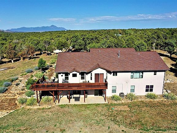 Breathtaking panoramic views of Mesa Verde and La Plata Mountains from this well maintained stucco home nested in the trees for privacy!Featuring: an open large living room with vaulted ceiling and large windows, cooks dream kitchen: granite counter tops, cherry cabinets,breakfast bar including a double oven! The main suite is on the main floor with walk in closet, large bath including a steam shower. Also theoffice, laundry, 2nd bedroom, and bath are upstairs. Downstairs is another master suite, two more bedrooms, theater room and craft room.Plenty of storage. No attention to detail left out: wall and ceiling speakers, central vac, central air, travertine tiled floors security cameras andoversized 2 car attached garage. The large deck is perfect for entertaining! Xeriscaped, mature yard! Extensive fire mitigation has been done.Located 15 minutes outside of Mancos, just North of Mesa Verde National Park.