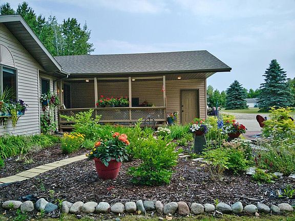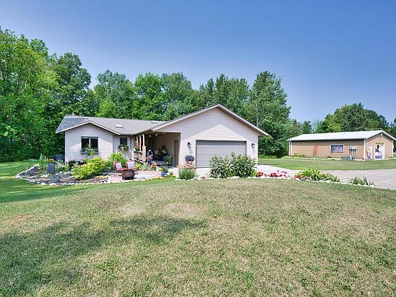 You will fall in love from the moment you walk in the door! Everything you need for main level living with the added bonus of an entire lower level to transform into whatever you wish. Open kitchen/dining rooms, spacious living room with gas fireplace. Primary bedroom with walk in closet and full ensuite including separate tub and shower. Main floor laundry and attached 2 stall garage, plus a detached 30x40 metal building with shop area as a bonus. Property is meticulously maintained with beautiful trees, perennial beds and rock work throughout. Situated on 1.5 acre lot with frontage on Bass Brook just steps down the cleared path to the waters edge. Sit on the multi-level deck and enjoy the sounds of nature and the gorgeous surroundings. This home has been updated with attention to detail including the very inviting covered front porch. New furnace, Central Air, and more. Close to town yet it's own little oasis! Paul Bunyan Fiber optic high speed internet to boot!
