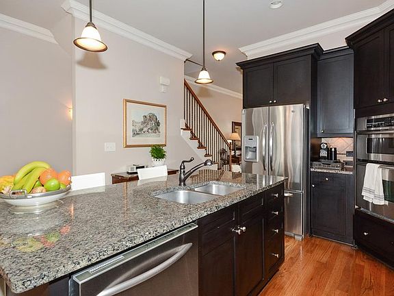 Immaculate end unit townhome in sought after Alderwood on Abernathy. 3BR/3.5BA in gated community w/pool. Open Floorplan, neutral decor, crown molding, separate DR, hdwd floors, chef's kit w granite & stainless appliances. Fam Rm w fplce open to large, private deck. Spacious master ste w trey ceiling & luxurious BA. Large 2nd BDR w BA en suite. 1/2 BA on main. 3rd BR plus full bath on terrace level. Lge 2-car garage, End unit provides extra light. Walk to shopping, restaurants & park. Great schools. Don't miss this beautiful, well cared for home!
