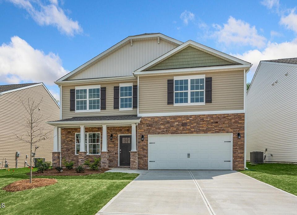 BACKS TO TREELINE! The Wilmington floorplan offers a generous 4 bedroom 2.5-bathroom space! With a bright and stylish kitchen of your dreams, enjoy entertaining your guests! Cozy up next to your fireplace with your next book or favorite game! Formal dining and office space on the first floor! Smart home package included!! Galvins Ridge is located in the booming Sanford, NC! This thoughtfully designed master-planned community will feature a wide array of gathering spaces throughout the community to stay connected with friends and family. Planned amenities include a pool, clubhouse, outdoor courts, paved walking trails, dog parks, a fishing pond, and more! It is conveniently located off Highway 1 within 10 minutes of major area employers in Central Carolina Enterprise Park and Triangle Innovation Point including Pfizer, Caterpillar, Astellas, and Vinfast. Our community is 15 minutes from 540, 20 minutes from Holly Springs Towne Center, 35 minutes from Raleigh, 35 minutes from RTP, 45 minutes to Fort Bragg, and minutes from historic downtown Sanford! Photos are representative!