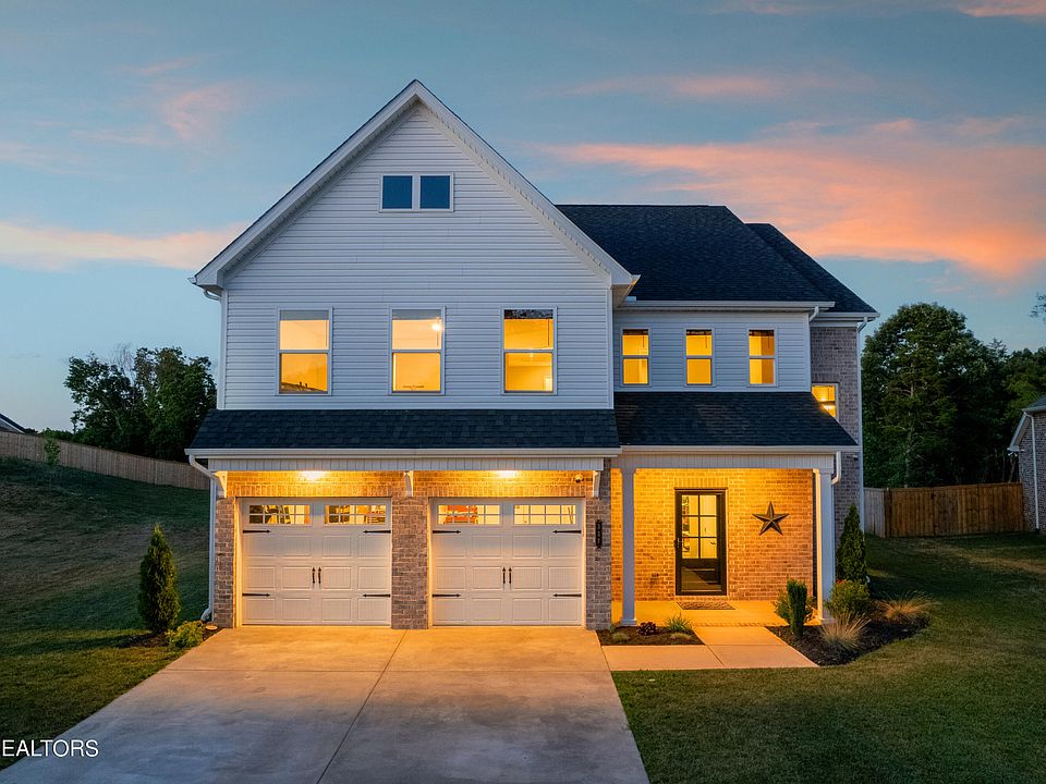 OPEN HOUSE SATURDAY (7/20) from 12-2pm! Your dream home awaits at the Grove at Harrison Glen! Step into this nearly new sanctuary with 5 bedrooms, 3.5 bathrooms, and bonus room, all perfectly situated on almost 0.5 acres within the desirable community of Lenoir City. Nestled on a quiet cul-de-sac, this property features a spacious backyard and an expansive driveway leading to two separate garage bays adorned with stylish carriage doors. The nearly half-acre lot is bordered by serene woods and a common area, providing enhanced privacy and the comfort of knowing no future construction will be able to disturb your peace.