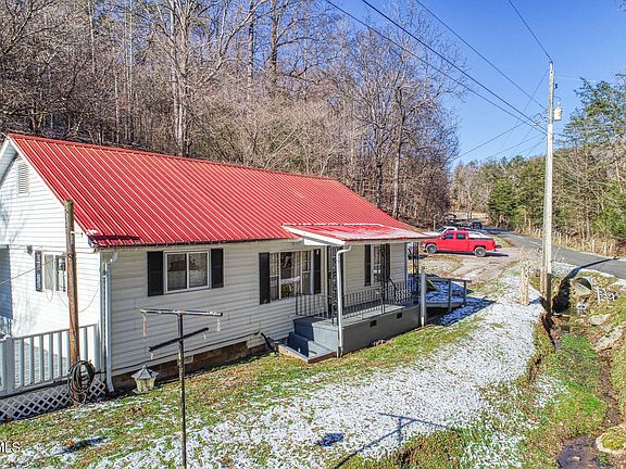 This quaint cottage type home is tucked back in Baker Hollow, a rural community just to the west of unincorporated Washburn Community in Grainger County. A spring fed stream can be seen and heard while sitting on the front porch enjoying your morning coffee or afternoon tea. Inside you will be greeted by a large family room with a propane fireplace that is about 3 years old and has barely been used. The house is very cozy as it is heated by a propane furnace and has electric central air conditioning. 2 bedroom and 1 large bath. A laundry room, a mud room, a side balcony desk and attic storage are great amenities. Over 2 acres of woodland with mature hardwood trees behind the house is full of wildlife and and provides an excellent building site for a cabin or another conventional home. Information deemed reliable but not guaranteed. Buyer/buyer's agent to verify all information.