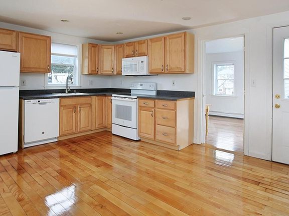 Charming cottage-style home in West Roxbury near the Newton line. Great starter home or condo alternative in good commuter location near VFW Parkway and Dedham St. First floor features an open kitchen with brand new appliances, newer cabinets, and dining area with access to back deck and yard. Room off the kitchen is an ideal office or third bedroom. A cozy living room with closet, and half bathroom complete this bright, open space. The second floor offers two bedrooms with walk-in closets and a bathroom with vanity and Jacuzzi tub/shower. Wood flooring throughout. Basement has washer/dryer, tile flooring, and exterior access. Attic crawl space for additional storage. Property being sold "As Is."