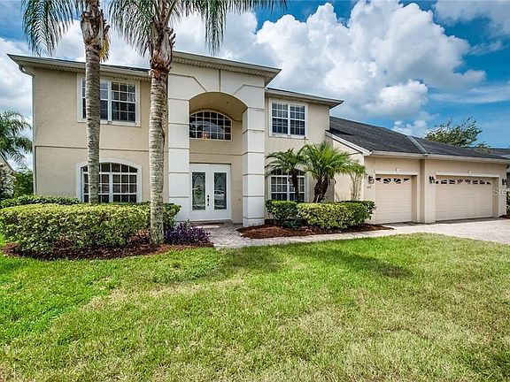 MUST SEE! Located within the gorgeous gated community of Forestbrooke Estates - this home features a large floor plan, 3 car garage, and private pool that overlooks the waterfront view from one of the largest water frontage lots in the community! Walk into the 2 story foyer that separates the formal living and dining areas and continue into the great room - large open floor plan with eat-in kitchen and a lovely view of the pool/waterfront. The great room has an office (could be converted to 6th bedroom) and a full guest suite as well as the laundry room. Upstairs features large loft, master suite and 3 additional bedrooms. Master suite features 2 large walk-in closets and master bath features double sinks, corner garden tub and a walk in shower. Stepping out onto the lanai and fully screened in pool, there is a fully fenced in back yard overlooking the waterfront. The community also features a private waterfront area with a dock, BBQ area and Gazebo. This home has updated HVAC (2018: TWO 17 Seer HVAC installed)