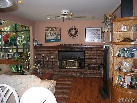 This center hall 4 bedroom two and a half bath colonial in Ft Salonga sits on a private 1.28 acres. The home has a beautiful solarium that provides an abundance of natural sunlight. The family room with a fireplace opens onto the solarium and the kitchen giving the entire back living space an openness not found in your traditional colonial. Off the kitchen ins a half bath and laundry room. The formal dining, and living rooms complete the first floor. The four bedrooms and hall bathroom are on the second floor. The master bedroom is large with its own bathroom. There is hardwood throughout the house. The full basement has stucco walls although the new owner will likely finish it further. The yard is extra private. Trees and shrubs line the long winding driveway that sets the house well off the road.