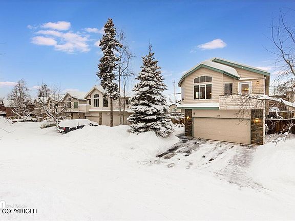 Do not miss this beautiful move-in ready home with two car garage and fully fenced yard.Located in south Anchorage's Oceanview community, this lovely home offers a modern & open floorplan w/vaulted ceilings, tall south-facing windows, & balcony w/partial mountain views and plenty of sunshine. Main living area features kitchen w/breakfast bar open to living & dining, & direct-vent gas fireplace.The spacious primary bedroom includes its own en-suite bathroom with granite counters, tile floors, and huge walk-in closet. Spend your summer afternoons lounging on the large backyard deck, and enjoy the raspberry bushes. This home has everything you need, plus excellent curb appeal and fantastic proximity to trails, Johns Park, and Oceanview Elementary. Dues cover water/sewer and snow removal on road only. Owner responsible for driveway snow removal, insurance, and all other utilities.