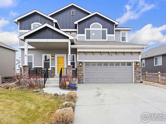 Check out the warm and inviting atmosphere in this beautiful two story home. There is "LOW RATE" ASSUMABLE VA Loan in place for QUALIFIED VA BUYERS. Solar Panel Loan Documents Available upon request. The kitchen, living room, and dining room flow seamlessly together, creating an ideal space for entertaining. The kitchen boasts an oversized island, granite counter-tops, and stainless steel appliances. French doors lead to a main level office and a convenient bathroom, completing the main floor functionality. Ascend the stairs with a custom stair rail to discover the primary suite. Vaulted ceilings enhance the spaciousness, with room for a sitting area. The primary bathroom features dual vanities, a step-in shower, and a soaking tub. Three additional bedrooms and another full bathroom as well as the laundry room all on the upper level. The backyard includes an expansive covered deck and a large custom fire pit. Over-Head Storage is plentiful within the three-car garage. Enjoy this friendly neighborhood with a community pool only two blocks away and close proximity to downtown, shopping, schools, with easy highway access! The Berthoud Community hosts many seasonal and fun activities throughout the year. Required Annual Pool Fee is $216.00