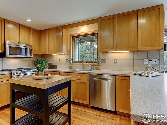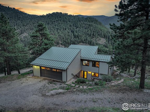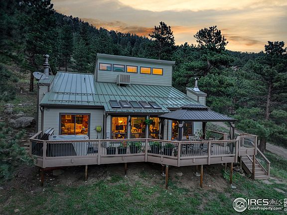 Sited atop the Boulder Canyon, this private, quiet home sits above the Boulder Creek Trail, overlooking the canyon with stunning views out nearly every window. Immediately upon entering you will be WOW'd by the soaring ceilings and abundance of natural light that pours through the numerous windows and skylights. You will love the charming details throughout: rock wall and rock fireplace, a cozy wood stove heats the home. Kitchen boasts granite countertops and gas range w/ dual ovens. An entertainer's delight w/ huge deck overlooking the canyon. Savor Colorado at nightfall from the hot tub in the secluded space. Luxe primary bedroom features vaulted ceilings, private balcony, luminous windows. Sumptuous bath has recently been updated. Unbeatable location, just 10 minutes to downtown Boulder, 20 to Eldora in a friendly mountain neighborhood w/easy access to the Boulder Creek Trail & surrounded by hiking trails. Enjoy energy savings and Xcel rebates with the solar panels & new windows throughout!