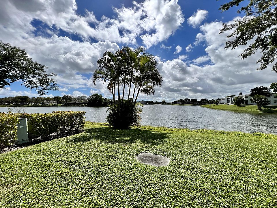 Fabulous FIRST FLOOR WATER VIEW 2/2 unit in the desirable Chatham section of 55+ Century Village. Enjoy gorgeous water views from the enclosed lanai. Neutral tile floors throughout. Kitchen updated with white cabinets. California shutters on living area windows. Two full baths. Accordion shutters on front windows. Unit is sold furnished and as is. Building is a no smoking, no pet, and no rental building. Century Village is a 55+ community with so much to offer... shows, movies, clubs, pools, security, and transportation service. The Clubhouse features a theater, indoor pool, card room, community/party room, billiard room, shuffleboard, tennis, pickleball, bocce, and two outdoor pools. Numerous heated outdoor pools throughout the community. Separate fitness center with gym and outdoor heated pool & resistance pool. Two manned gates and 24-hour roving security patrol.