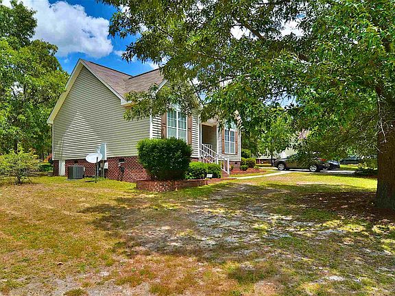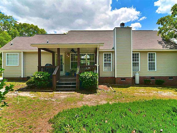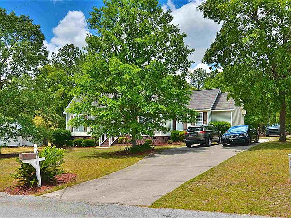 INTERIOR PHOTOS COMING SOON! 3BR/2BA ON 1/2 ACRE LOT w/ MATURE TREES IN CHARMING NEIGHBORHOOD. HUGE BACKYARD HAS COVERED DECK AND POWERED WORKSHOP w/ 1 GARAGE BAY, BACKS TO WOODS. COVERED FRONT PORCH. LAMINATE WOOD FLOORING IN FOYER, GREAT ROOM, AND MASTER. VAULTED CEILINGS AND ARCHED WINDOWS GIVE AN OPEN, SPACIOUS FEEL. GREAT ROOM w/ FIREPLACE AND LARGE DINING AREA OPEN TO LIGHT-FILLED KITCHEN. STOVE, DISHWASHER, AND FRIDGE INCLUDED. SPLIT FLOORPLAN, MASTER SUITE HAS WALK-IN CLOSET, DOUBLE SINKS, GARDEN TUB, AND SEPARATE SHOWER. 2 MORE BEDROOMS SHARE A FULL BATH OFF HALL. ONLY MINUTES TO I-20, SANDHILLS SHOPPING, FT. JACKSON. NO HOA FEES. ELIGIBLE FOR USDA RURAL HOUSING PROGRAM.