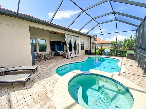 WELCOME TO YOUR OWN PRIVATE PARADISE ** Imagine morning coffee on your screened lanai while watching the sunrise over the pond or family fun time in your pool and spa.* This one-story, 4 bedroom, 3 bath has it all! Owner's suite is separate from the secondary bedrooms and play area, inviting kitchen with breakfast bar and open to the large great room for entertaining. 3 Bay garage with door openers & valuable storage space Other Perks: Home comes with paid- for outdoor cameras that you access online and stores up to 60 days of footage with continuous 24 hour coverage. Also 7.1 speaker and surround sound in great room and activity room. Salt water pool with a brand new pump, and heated spa. Lovely Harbour Isles community boasts a large pool and outdoor activities area, well-equipped fitness center, and more! CALL TODAY and make this beautiful K. Hovnanian home yours.