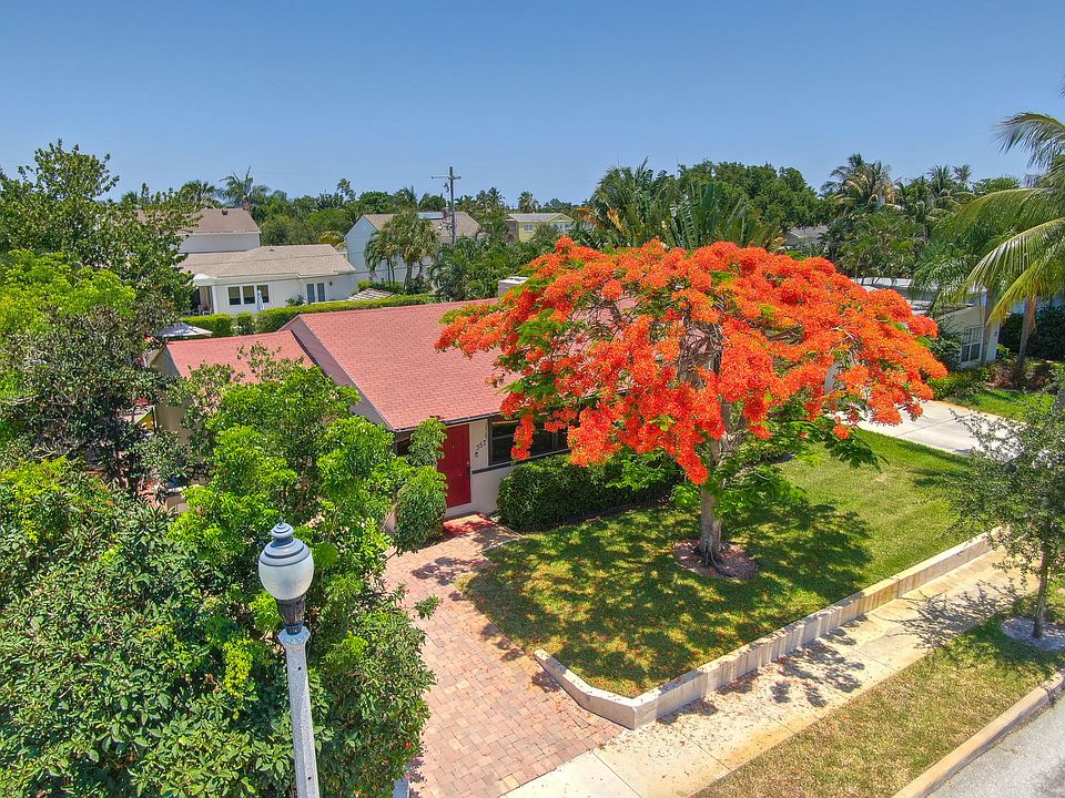 Updated & renovated mid-century modern ranch style home in the historic and desirable SoSo area! All impact rated doors & windows! Three bedrooms, two full baths, inground private pool resurfaced 2018, paver brick pool deck & patio in a fully fenced backyard enhances the retreat athmosphere! Recaptured, polished antique wood floors & fireplace in living room, pecky cypress ceiling in Florida/family room. Updated kitchen features hi-end appliances, granite counters, dining area views pool & patio. Huge master bedroom with double door leading outside. Large storage shed for lawn/pool equipment. Zoned for A rated elementary school. No HOA, bring your pets & toys! Regain your serenity! Enjoy casual walks along the intracoastal just 2 blocks away!