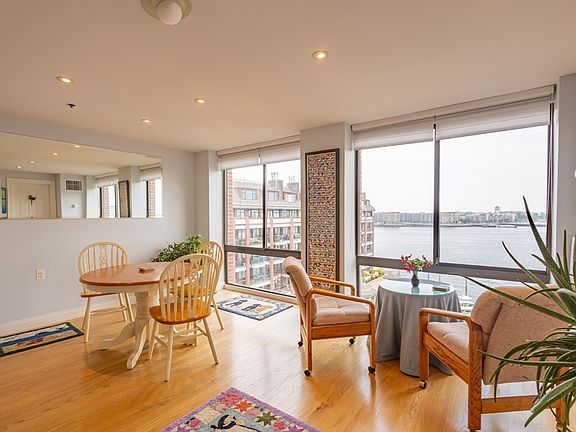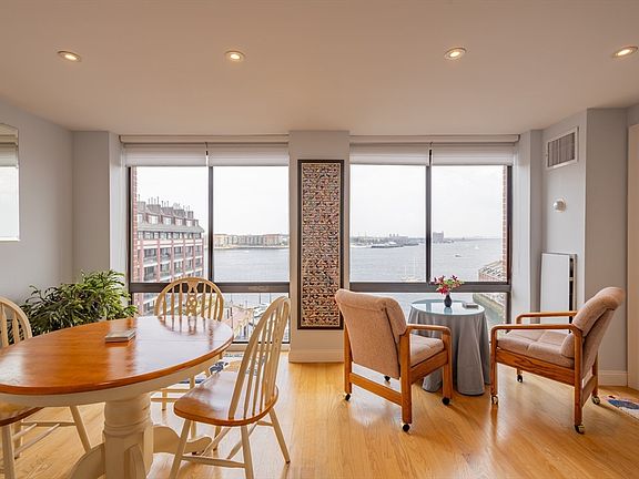 Rare opportunity to own a waterfront unit in the historic Lincoln Wharf condo building. This condo features unobstructed 180 degree views of the harbor. Originally a two bedroom, now converted by the sellers to a spacious one bedroom optimizing the water views from the living room and the bedroom (can be turned back into a two bed). A spacious kitchen greets you upon entering with beautiful tile work. Continuing down the hallway brings you to the bedroom and a recently renovated bathroom. The living room has spectacular view of the harbor and East Boston, and also contains a work from home area. Owners have maximized every angle possible to bring picturesque views to your morning cup of coffee. Other highlights include central air with two zones, and an enormous amount of closet space! Building has glass elevators, 24/7 concierge, spacious fitness center, sunny atrium, deeded storage, direct access to harbor walk, walk to the North End!