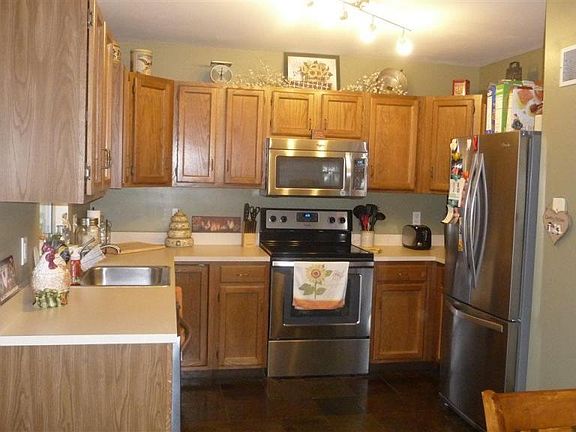 Well Maintained Townhome. Stainless steel appliances in kitchen which has slate floor. 6x 10 deck off kitchen. New roof in June. Wall to wall carpet in large living room and two bedrooms. Each BR has a ceiling fan. 10 x 18 storage area behind built-in one car garage. Condo fee includes outside maintenance