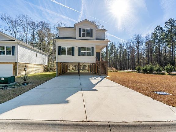 To be built. This is a beautiful two story raised River home with 3 spacious bedrooms and 2 full bathrooms on a direct River Front Lot. On the main level of the home you will be welcomed by a spacious open floor plan. Featuring luxury vinyl plank flooring, chrome light fixtures and ceiling fans. The kitchen features a stainless steel electric microwave, a stainless steel range, a stainless steel dishwasher, walk-in pantry, granite counter tops, eat-in island, and a dining area. This spacious open plan offers lots of natural lighting and a sliding glass door that leads out to the custom 12'x28' covered and screened extended patio. This is a split floor plan with two bedrooms and a full bathroom on the main level of the home. Upstairs you will find a luxurious master suite with a tray ceiling, ceiling fan, two walk-in closets, and a separate sitting area. The en-suite features luxury vinyl plank flooring, chrome faucets, chrome light fixtures, cultured marble counter tops, and a stand up shower. This beautiful home sits on .34 acre lot that backs up to the Waccamaw River. The home offers lots of storage underneath for your boats, motorcycles, golf carts, and various luxury or sporting equipment needs. The underneath storage includes two garage doors with openers, privacy panels on the sides, and extended patio under the rear deck. Enjoy the tranquility and privacy offered in this Waccamaw River Lifestyle Community! Fish from your own back yard, bird watch from community gazebo, or launch your boat from the up and coming community boat ramp. Here you will find lots of opportunities for outdoors activities such as jogging, biking, and trail walking. Don’t miss out on this beautiful brand-new home.
