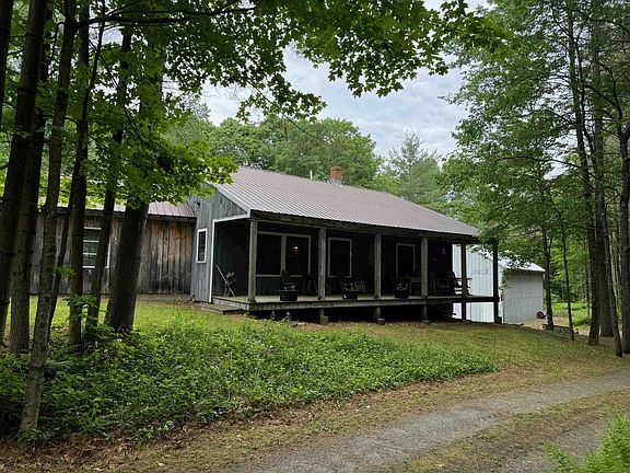 Located in the desirable Rush Meadow region of West Windsor, set back from the road for privacy, this comfortable, well built custom post and beam cape has all that you need. The open concept kitchen living room opens up to a covered porch that runs the span of the front of the home. Every inch of the home is built with locally harvested and milled lumber by the Seller. The gorgeous floor planks are of White Birch and White Pine. The Walls, ceilings are all pine with whimsical detail throughout. The main level has one bedroom, and a TV Room/Study, Laundry and full Bathroom. The second level has two additional rooms and a shared bathroom. The cellar has great ceiling height for expansion. There is a spacious, heated two car garage connected by a breezeway. The newer barn/workshop would be ideal for hobbies, auto storage, or animals The 14.43 AC are entirely encompassed by ancient stone walls with a stream lacing through the hollow of the land, and hiking trails throughout. VAST trail runs along the edge of the property. Lots of room for gardens, recreation.