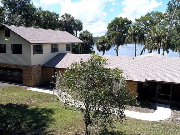 MAGNIFICENT RIVERFRONT VIEW! This home sits on over 5 acres on the great St. Johns River with 268 feet of river frontage. If you are looking for privacy on the river this is it!! Spacious home with sunken living room and fireplace, spacious kitchen and screened front porch. Large attached garage with a huge loft overlooking the river. Gorgeous palms and live oaks throughout the property. A large detached garage (1200 sq ft) has plenty of room for storage. The roof on this home was replaced in 2016. Call today for your private showing!