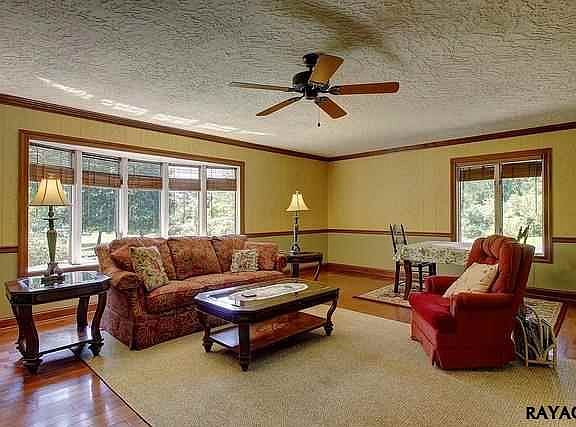 Immaculate sprawling rancher w/lots of space inside & out. Custom KIT w/quartz counters & island, cherry cabinets & stainless appls. Master suite w/cathedral ceiling & must see bath. Lots of hdwd & ceramic floors. LR w/crown molding & wood stove. Huge LL fam rm w/pellet stove. Additional sunrm & heated det gar. Convenient to York/Hburg. This won't last - Act now!