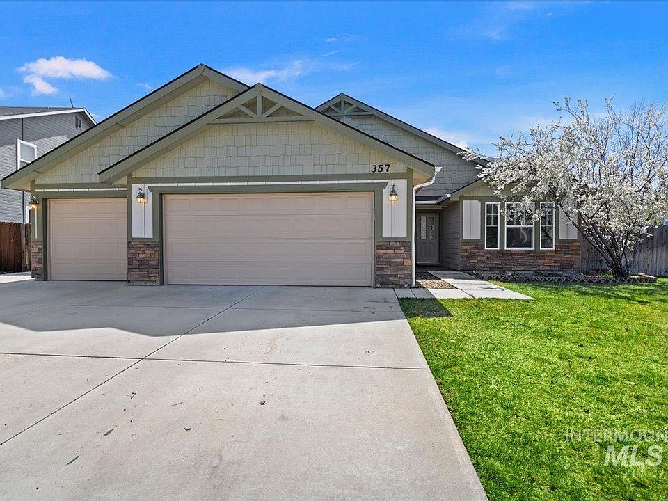 Come fall in love with this single level home with RV space and 3 car garage. Open the door to a great entry with lots of natural lighting. Granite counter tops in the kitchen which features a breakfast bar open to the living room. Laminate flooring throughout the home. Grill out under the covered patio that opens into an easy maintenance backyard which is mostly concrete and pavers, with three fruit trees, apple, cherry and pear. RV parking on the side yard that has a gate that opens to over 8ft wide.
