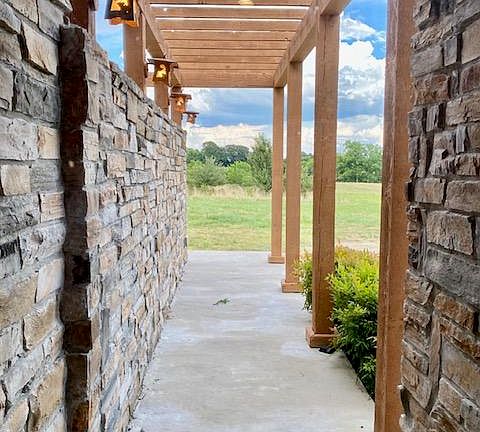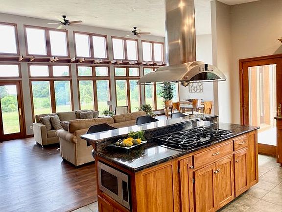 Contemporary Home on 13 m/l acres with pond and fruit orchard next to house built in 2004 just minutes from 44 and 13 highway. This Private home has a Huge open concept kitchen showcases beautiful granite countertops, double oven, and a stainless gas cooktop open to a artistic living area. The gorgeous Living room has soaring ceilings with floor to ceiling panoramic views on both sides to land & pool patio along with a high efficiency fireplace for cozy encounters. The Huge Entertainment room & Office area could be used as a 4th & 5th nonconforming bedrooms both open to pool! (New liner negotiable) Living area has a huge screened in porch with great views all around and exterior cedar trim throughout. The Master bedroom suite has floor to ceiling glass walls with great nature views, and a very spacious walk in closet with door to crawl for storms. Master suite room also has wood burning fireplace with tall floor to ceiling windows on both sides with updated bathroom suite with both glass walk-in shower and garden tub. Entertainment room/2nd living room is spacious facing pool patio area including full bathroom which was an add on for a 5th bedroom. The basement could be used as a media room/wine cellar/6th bedroom/storm shelter as well as storage. Many upgrades had been done to improve irrigation. Metal roof & low maintenance exterior complete your family oasis just minutes away!