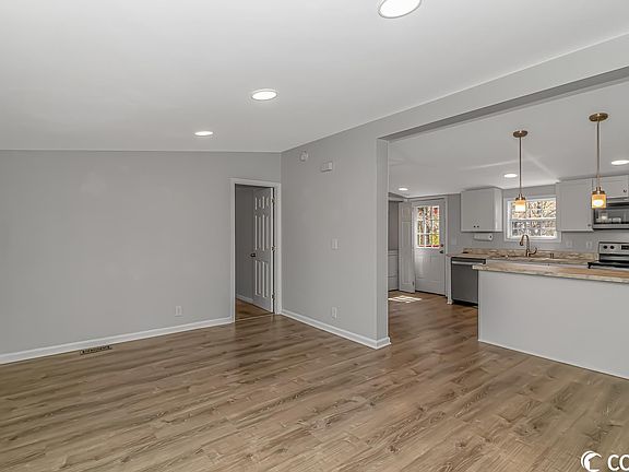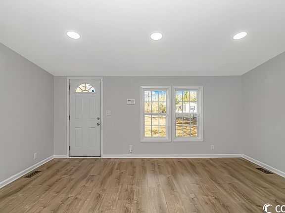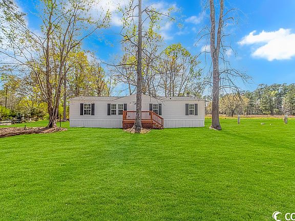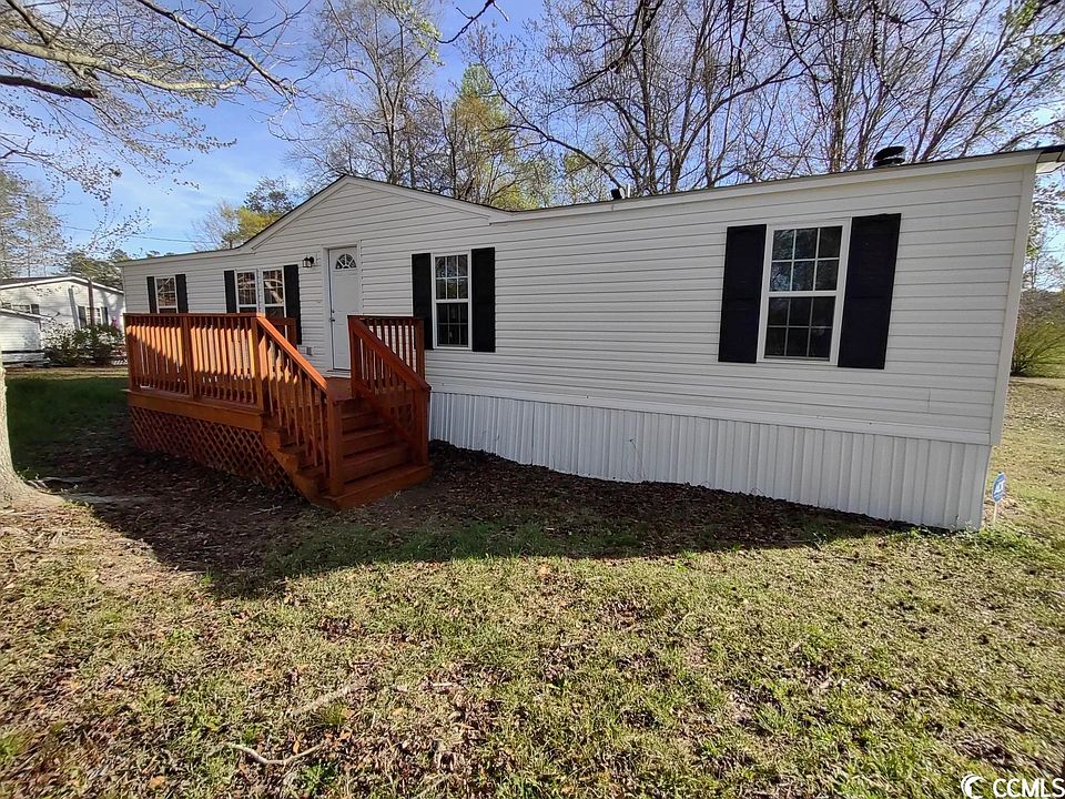 Located on a beautiful private lot, this home was completely renovated recently. Upgrades include all new windows, walls, sheetrock, paint, flooring, appliances, and bathrooms. Roof and HVAC were both replaced in 2021. Beautiful kitchen is complete with an island, pendant lighting, French door refrigerator, built-in microwave, dishwasher, and large stainless steel sink with a window overlooking the backyard. Living room features luxury vinyl plank flooring. An additional living area, aka den, includes a wood-burning fireplace and large sliding glass door that steps out to the 12.5ft X 15ft wood deck and large backyard. All bedrooms have carpet flooring. Master bedroom includes an ensuite bathroom with double-sink vanity and shower/tub combo. Built-in alarm system on all doors and windows. Both front and back porches have been re-stained. Fan for the under breath of home is a commercial variable speed exhaust fan. This turn-key property is ready to be called home. This home rests on leased land and the Seller is offering to pay your land lease for the first year! Centrally located in Conway, only five minutes from the quaint Downtown area of Conway along the Waccamaw River. Close proximity to any local shops and cafes. Headed towards the coast, you're only 20 minutes from the beach and all the local tourist attractions available in Myrtle Beach. Be sure to take the time to schedule a tour today.