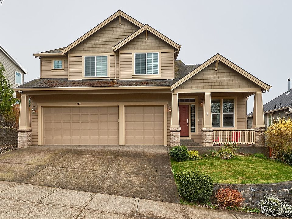 Desirable home in Newberg's 'The Greens' golf course community. Two story Craftsman home features an open great-room style living space. Separate family & living rooms adorned with gas fireplaces. Kitchen boasts stainless appliances, cherry cabinets, tile counter tops and large island. Spacious Master with coved ceilings. On-suite bath shines with double sinks, walk in closet & soaker tub. Downstairs office could double as 4th bedroom.