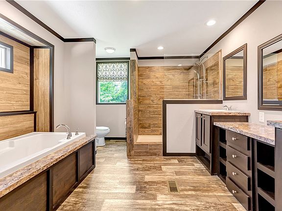 - Ceiling Fan(s), Granite Counters, Garden Tub/Roman Tub, Laminate Countertop, Bath in Primary Bedroom, Main Level Primary, Separate Shower, Walk-In Closet(s), Walk-In Shower, Window Treatments