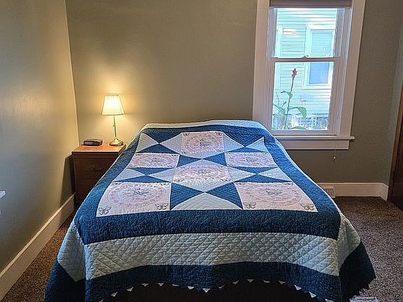 A lovely 1.5 story house within a mile of the city pool, parks, and restaurants. Main floor master bedroom. 2 bedrooms upstairs plus a bonus room that can be used as an office, game room, etc. Kitchen is L-shape and has a pantry. Kitchen cabinets are cherry wood & the drawers have soft-close slides. Main floor rooms have 10 ft ceilings with crown molding in living room, dining room, kitchen, & bathroom. Natural gas furnace & wood furnace, Electric water heater, Water softener. Brand new HVAC system and new shower panels in master bathroom. Oversize detached 2-car garage with automatic openers & fenced back yard. Large deck provides an ideal entertaining or relaxing area with built-in planter boxes, bar, and pergola. Driveway entrance is shared with neighbor. Fresh gravel and grading completed over the summer. Showings by appointment for qualified buyers.