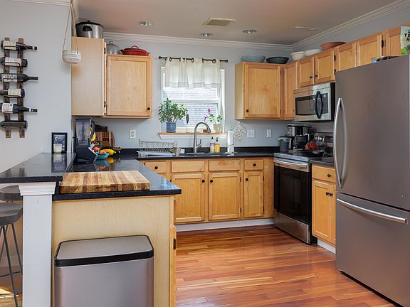 Gorgeous 3 Level End Unit Townhome in fantastic South Burlington location. This beautifully updated and maintained home offers lots of living space and great flow throughout. On the main floor you'll find a welcoming entry way leading into a fantastic kitchen with quartz counters, stainless steel appliances, wood cabinets and a breakfast bar. The kitchen opens to a dining area and chic living room with a cozy gas fireplace leading out to a balcony in a tranquil setting overlooking mature trees. Lots of windows and gleaming cherry floors provide warm light throughout. Downstairs is a massive additional living space with extra full bath and laundry. This is terrific flex space great for guests, recreation or whatever your imagination can create. A walkout patio on the lower level provides great access and natural light. Upstairs is a primary bedroom with a huge walk-in closet, nicely sized additional bedroom and shared full bath. Attached garage and lots of closets and pantry space for great storage. Amazing South Burlington location, close to everything including schools, recreation, shopping, Downtown Burlington, UVM, UVMMC, I-89, the airport and much much more! Take a look today.