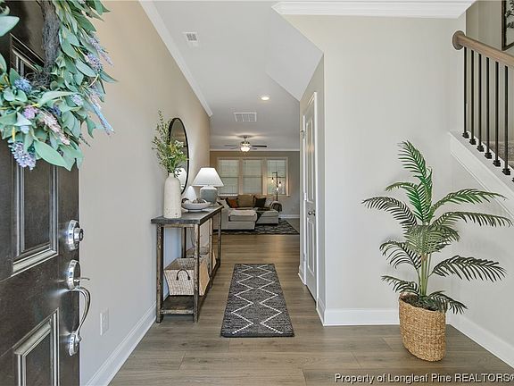 Better than new construction! Stunning 4 bedroom, 2.5 bathroom open concept home located in the private, gated community of Anderson Creek Crossing. As you walk in through the foyer you will find a flawless walkway with LVP flooring throughout. An open living with with custom built-ins and a gas fireplace perfect for gatherings or entertaining. A kitchen with a large island, stainless steel appliances, granite countertops and soft white and grey cabinetry. The dining area has access to the private screened back porch overlooking the fenced backyard and wooded area. All bedrooms are located on the 2nd floor. The owner suite features a walk-in closet, private bathroom with dual sinks, walk-in shower, lien closet and upgraded lighting and mirrors. 3 additional spacious bedrooms, a full bathroom and laundry room completes this beauty. Monthly association dues includes internet, access to the onsite fitness center, pool, playground and so much more! **LOAN ASSUMPTION OPPORTUNITY**