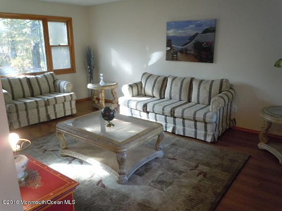 GREAT HOUSE at a GREAT PRICE. Well appointed spacious ranch located across from Crystal Lake in the Pinewald Area. Nestled on a 1/2-acre wooded corner lot, this one-story home features a two car attached garage, a family room with a tiled fireplace and sliders to a rear deck, a spacious living room/dining area combo, eat in kitchen with new Stainless Steel Refrig, stove and dishwasher, 3 beds and 2 full baths. The master bedroom has its own private full bath with shower/tub. The heating/cooling system has been updated to a gas FHA system with central air cooling. The hot water heater and cooking are electric but can easily be converted to gas. Utilities include a new septic system along with well water with a newer PH Filtration system. Washer / Electric Dryer hookups are available.