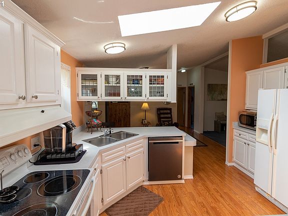 Very well kept wind protected south facing 4 bed, 2 bath home on in-town cul-de-sac! Secluded back yard w/deck, mature honey crisp apple tree, asian pear, blueberries & raspberries. Security lighting, 16 x 28 garage w/opener, covered porch, RV parking w/50 amp service & sewer cleanout. This is a great set up!