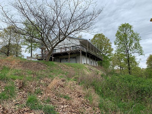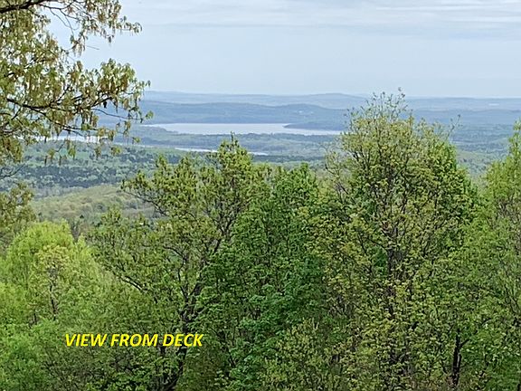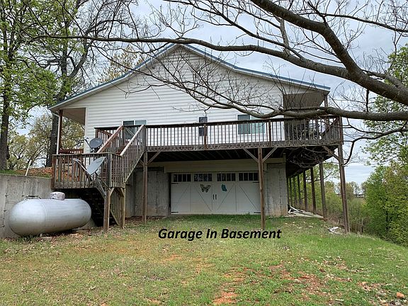Spacious 11-year-old home with a setting on the edge of a mountain looking out over 30 to 40 miles of Ozark Mountain countryside AND crystal-clear Bull Shoals Lake! Home has 2040 sq ft of finished floor space up and 1500 sq ft of unfinished/poured concrete basement which also "houses' a 23'5" X 24'8" double garage(1/2 bath/plumbed for full bath in basement)Home features 3 bdrm, 2 bath, great room entails kitchen, breakfast room, living room and formal dining room with access door out onto big sun deck looking out over the "lake-filled" countryside---pretty much lake views from every room. 10 FOOT CEILINGS THROUGHOUT THE FINISHED LIVING AREA. Master bedroom/bath has 2 walk-in closets and jacuzzi tub and walk-in ceramic tile shower with built-in bench. Good well for plenty of water. 30 acres mostly wooded and teeming with wildlife or holding your livestock. Only 8 miles to town, 25 miles to college town and less than 1 hour to Branson, MO. The largest lake in the state of Arkansas is right out your back door for the reasonable price of $324,900.