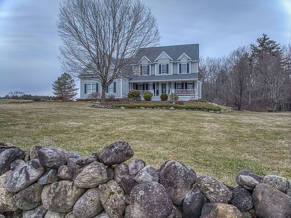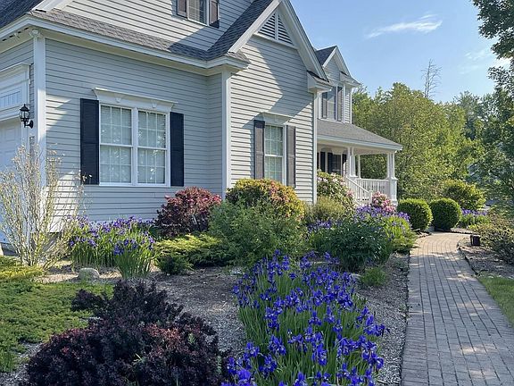 Adjacent to the CONSERVATION LAND TRAILS and FIELDS /Joppa Hill Farm, this meticulously crafted home, built by Becks, offers an unparalleled blend of elegance and comfort, with views of fields and direct access to trails. Arrive by the mahogany farmers porch and be captivated by the exceptional craftsmanship evidenced by custom millwork, crown moldings, and windowsills in each room. Throughout the main levels, hardwood floors and lofty 9-foot ceilings enhance the sense of space. A private office is across the foyer from the formal living room. The elegant dining room, featuring a bay window seat. The kitchen features granite surfaces, an island with seating area, stainless appliances and a walk-in pantry. The breakfast room opens to a 15 x 16 deck and SUNSET VIEWS of open fields/Joppa Hill land. Unwind in the family room, with a tray ceiling, built-in bookcases and a wood burning fireplace. The mud room leads to the 3-car garage (12ft ceiling). On the upper level, also with all hardwood flooring, the primary suite features a tray ceiling, sitting room, bath with spa bath and an oversized walk-in closet. The 3 other bedrooms share a full bath. The finished walkout lower level has French doors. Well maintained... new septic field in 2024, Hardi board siding, security and irrigation systems. Top Bedford schools. Just 15 mins. from MHT airport, and appx. 1 hr to NH mountains, lakes, seacoast & an easy drive to Boston. VISit today! Showings begin at Open House SUNDAY 5.5 12-2