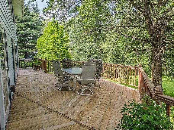 Country living, yet close to all amenities. That's what this lovely two-story, five-bedroom, center hall colonial has to offer. Situated on 1 1/2 sprawling acres, you'll have plenty of yard to plant a garden, install a pool, pitch a tent, ride your four-wheeler ... you get the idea. The home sits off the street, with views of trees out every window. The house features an oversized side-load garage, great for storage. Once inside, the home unfolds to all of the living areas. To the left, the large formal living room, which flows into the dining room. To the right, the huge eat-in kitchen and a half bath. Beyond the kitchen, the family room featuring a lovely brick wood burn fireplace. Sliders lead from the back side of the house to a large deck; great for entertaining or just relaxing with a morning cup of coffee. Upstairs, five amply sized bedrooms, all with beautiful hardwood floors. The master ensuite has an updated bath. The additional four bedrooms and an updated hallway bath complete this level. An unfinished walk-out to an inlaid brick patio completes the home. This lower level could be transformed into whatever you want it to be. Plenty of storage. This could be your dream home, call for an appointment.