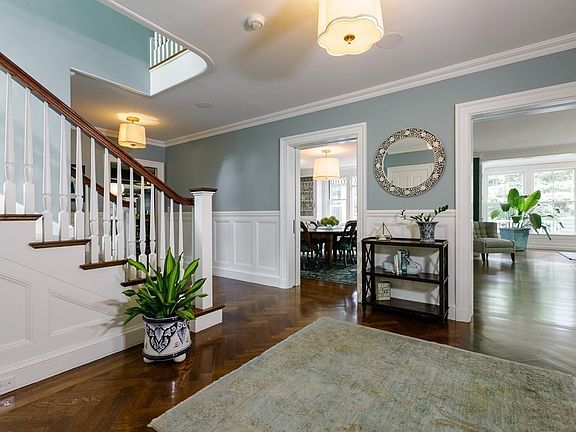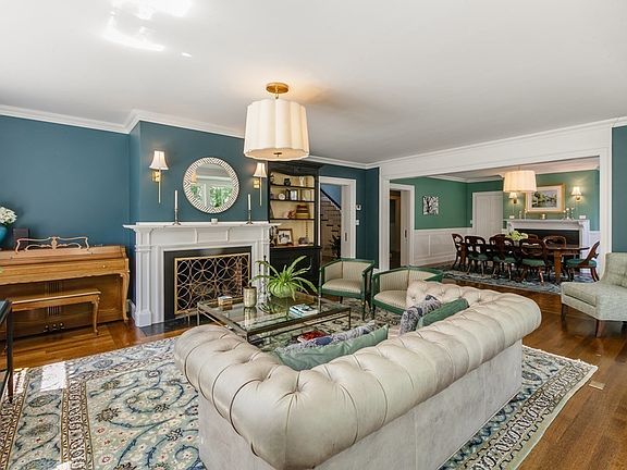 - Din Dscrp: Flooring - Hardwood, Fireplace, Chair Rail, Wainscoting, Closet/Cabinets - Custom Built, Window(s) - Picture, Crown Molding, Pocket Door