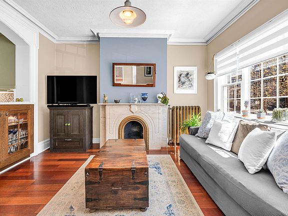 This spacious detached single-family home in Jersey City Heights has it all, 3 levels of living, gorgeous backyard, and parking all while being in a prime location. As you walk in, you’re greeted by a sun filled open concept kitchen and living room complete with original molding, marble fireplace and hardwood floors. The picture window in the living room floods the space with morning sun while the back glass door and kitchen windows bring in the evening sun. The home is full of custom woodwork that has stayed true to the home’s Victorian era roots. From the kitchen cabinets and many built ins to the custom-built mahogany deck and pergola in the backyard, it has been lovingly kept and restored back to its original glory. Upstairs you’ll find two spacious bedrooms, a full bath, and an office, while the ground floor offers another bedroom, full bath, and flex space which can be used as another living room or office. The ground floor is where you’ll also find the separate laundry room with an abundance of storage. The oversized backyard is the perfect place to gather and entertain or just relax and enjoy the beautiful landscaping and deck. Situated between Washington & Riverview Parks and one block off Palisade Ave with numerous dining and transportation options, this home is what you’ve been waiting for.