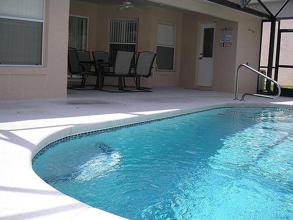 Beautiful 3 bedroom 2 bathroom fully furnished, single story home, currently used as a vacation home but would also make a great family home. Easy access to the Champions Gate area, the attractions and major road routes. Also zoned for Four Corners Charter school which is virtually on the doorstep. This light and airy home has a family room opening onto the south facing pool deck which looks onto shrubs, trees and grassy area. A well sized master en-suite bedroom plus 2 other bedrooms which share the family bathroom. A nice sunny pool deck with covered lanai with pleasant outlook completes this lovely home. Attractively priced.