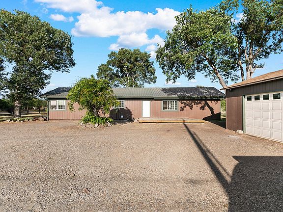 Spectacular opportunity here! Flat & usable land w/large 4 bed/2 bath, single level stick built home. Peaceful country property yet conveniently close to town. Gated entrance, tons of extra parking. Large, detached garage/shop & the property is completely fenced w/2 gates for entrance or exit. The house is very open and bright w/large windows that look out to the huge backyard. Vaulted ceilings throughout the entire home. The living room & kitchen have knotty pine open-beam ceilings & large wood beams. French doors lead to an enclosed back patio which offers a cozy retreat for relaxation. Garden beds, chicken coop, & dog run. Plenty of space for animals to roam. Additional highlights include: stainless steel refrigerator & gas range, tile kitchen countertops, newer metal roof, vinyl windows, laminate floors, inside laundry room, 2 storage rooms, & metal shed. High producing well (per seller) 220 power for RV & sewer/water connections as well. Bring your clients, they will love it.